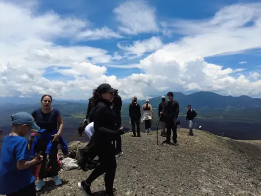 Los turistas no hablaron mucho en ese momento. Algunos tomaron fotos, otros simplemente se sentaron en silencio. Y hubo un instante —quizás de medio minuto— en que todos, jóvenes y adultos, respiraron al mismo ritmo. Como si, por fin, hubieran dejado de escalar el volcán para comenzar a habitarlo.